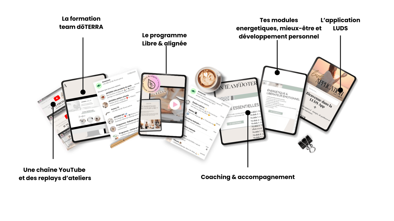 L’achat de ton kit de démarrage doTERRA te donne automatiquement accès à toutes les formations offertes, au coaching continu et à l’intégralité du programme Libre & Alignée.